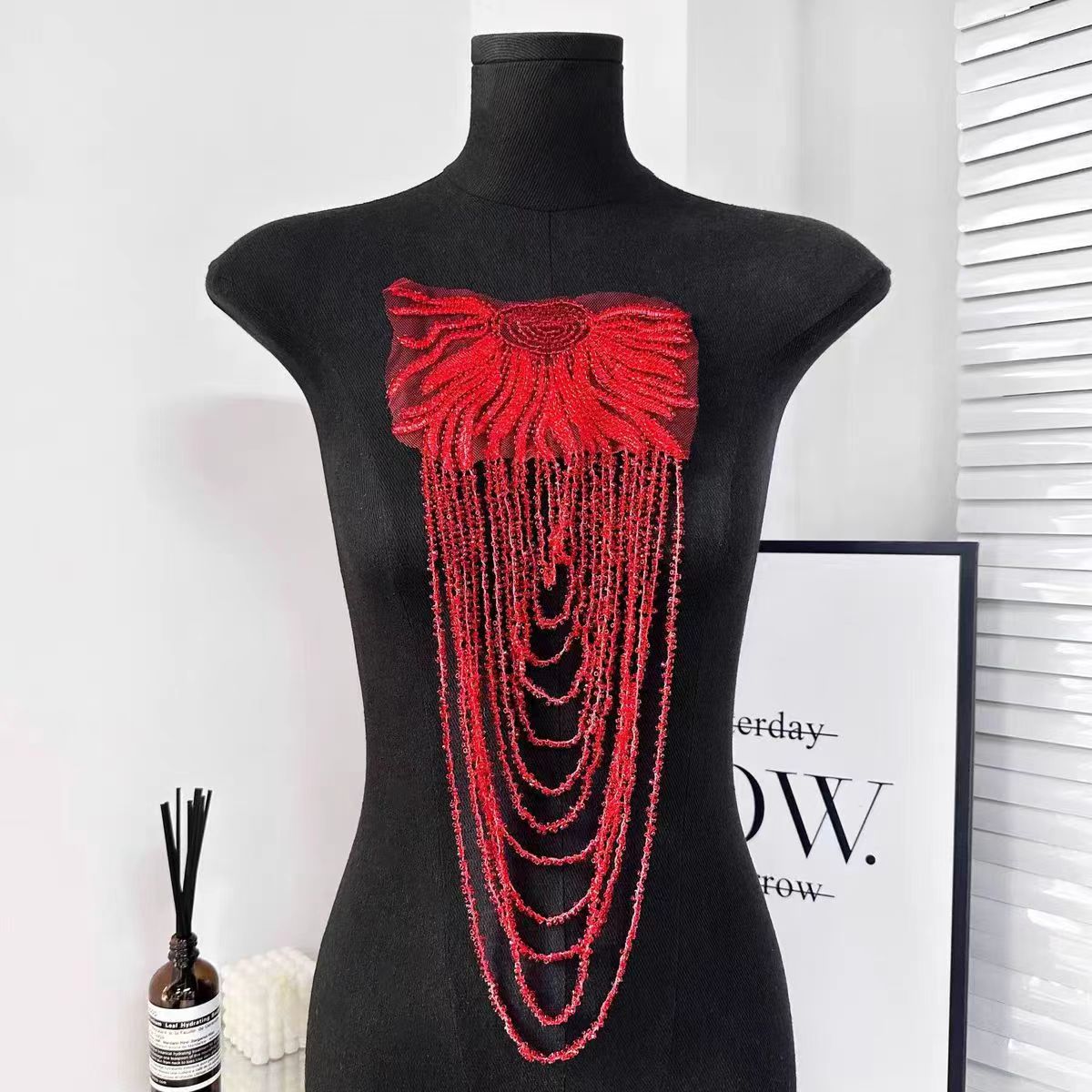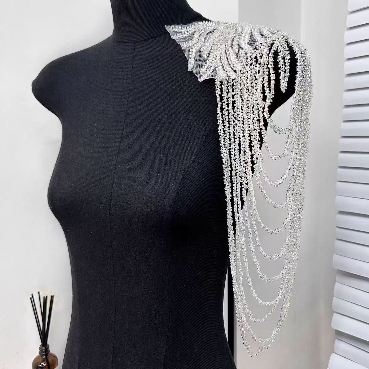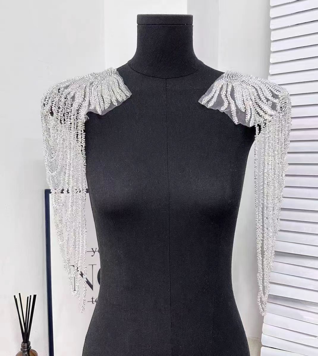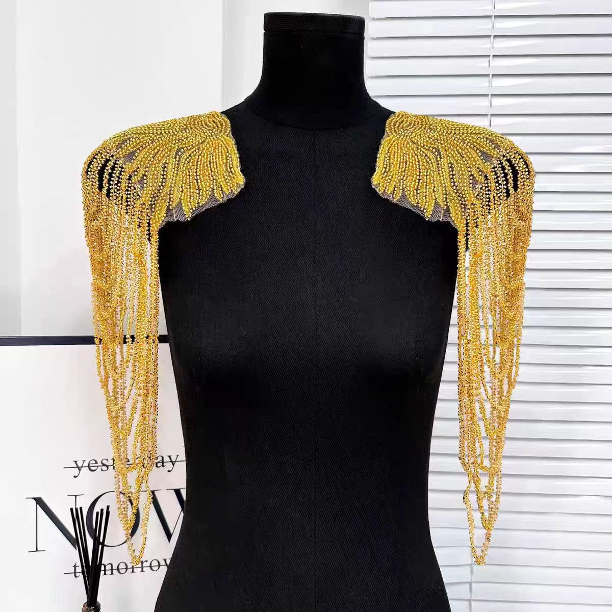Heavy craftsmanship fringe floral appliqué, fully embellished with beadwork, epaulet-adorned gown – lavish decorative accessories in Euro-American style.