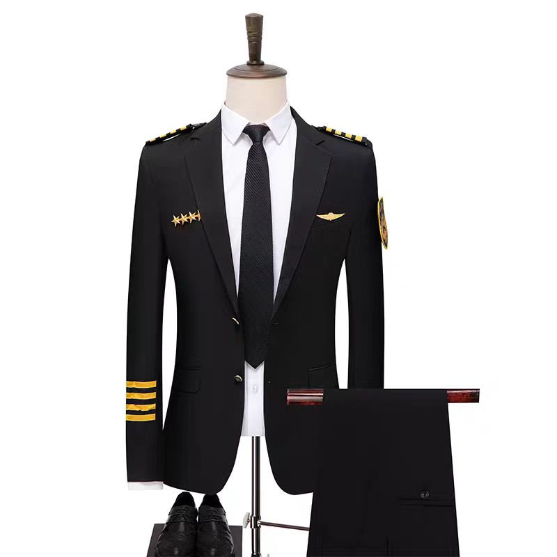 Captain's uniform, flight attendant uniform, aviation school uniform, men's suit set, slim-fit cabin crew suit