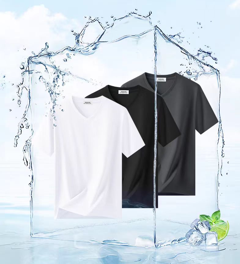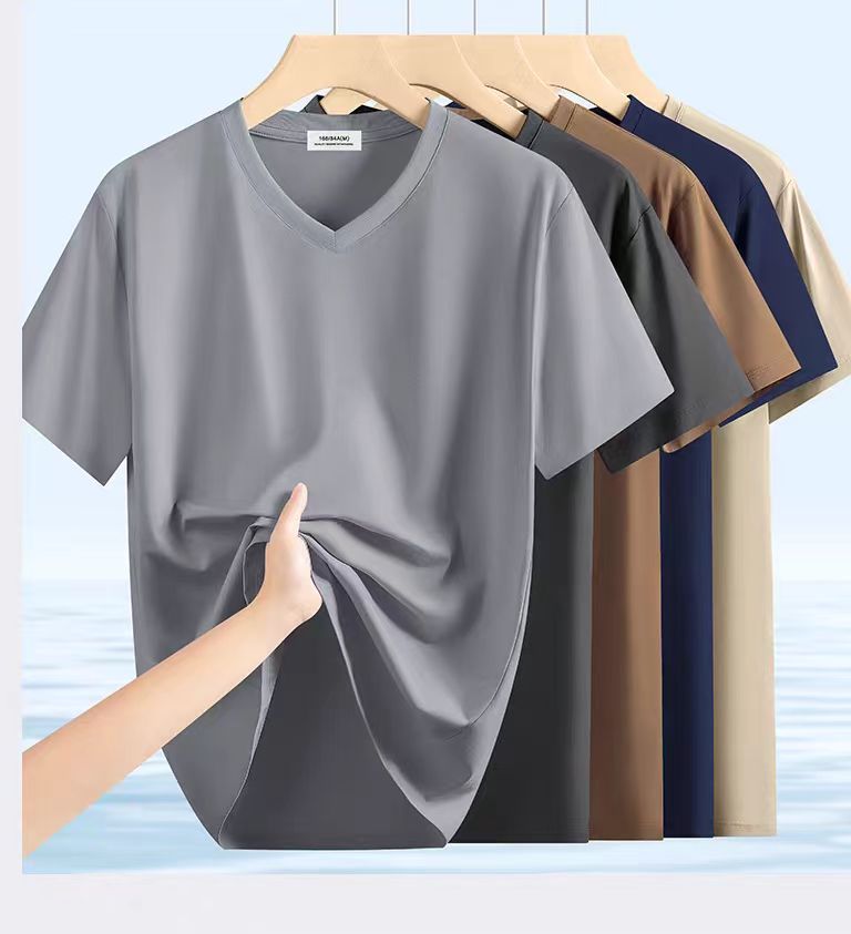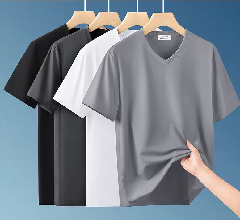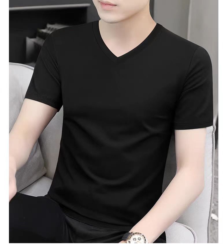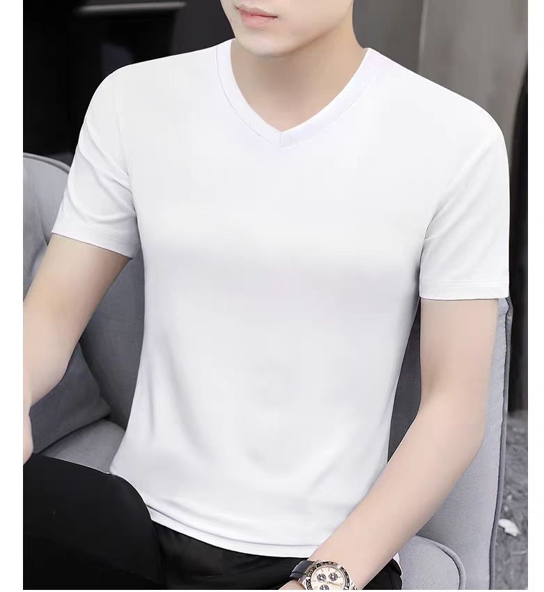 Summer new style men's V-neck solid color short-sleeved T-shirt, premium top.