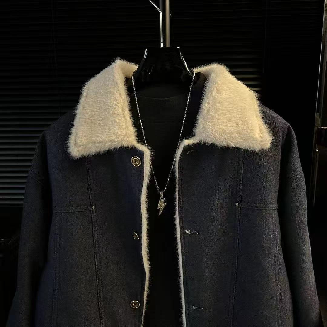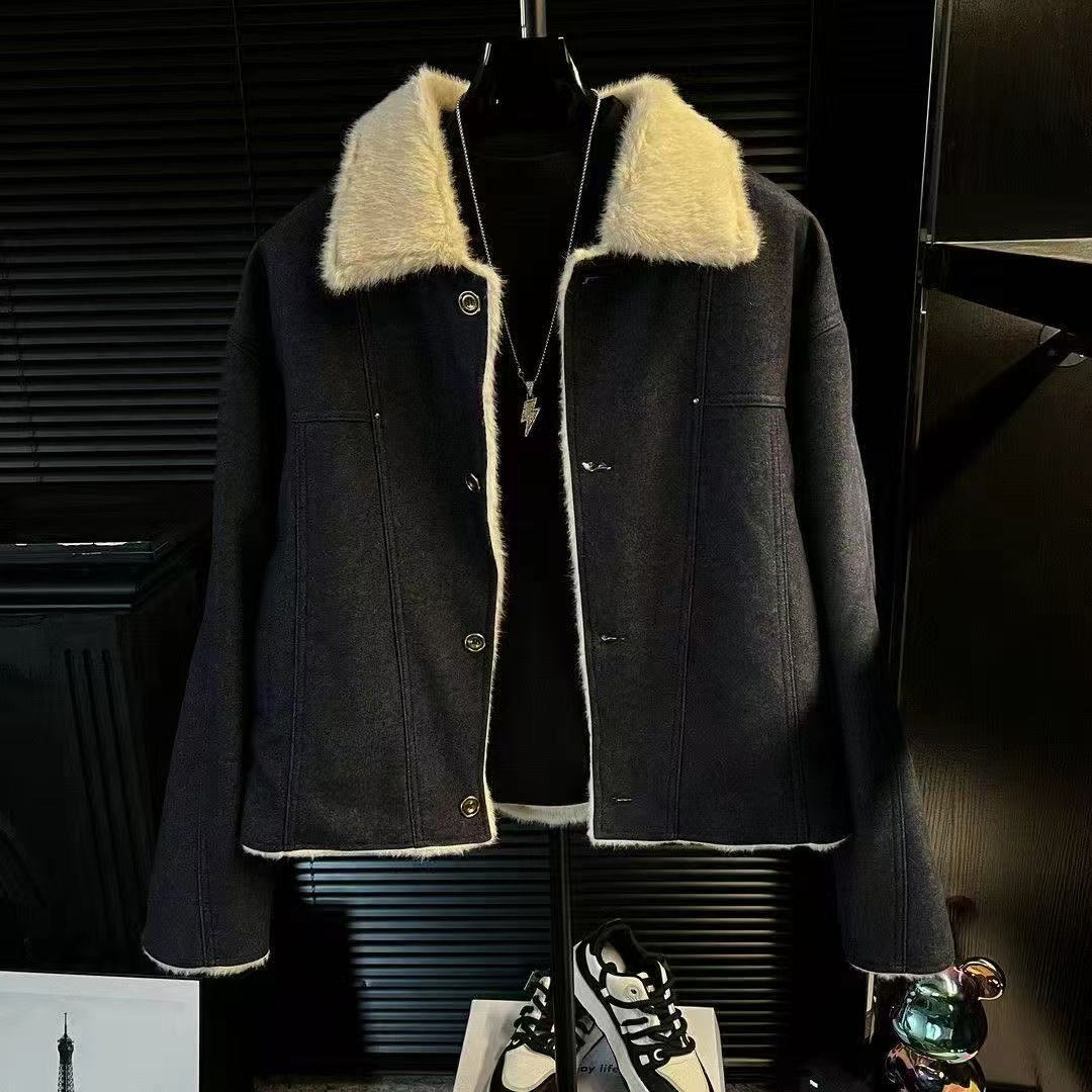 Fitted Black Shearling Jacket - Short Length, Small-Batch Design, Autumn/Winter New Arrival